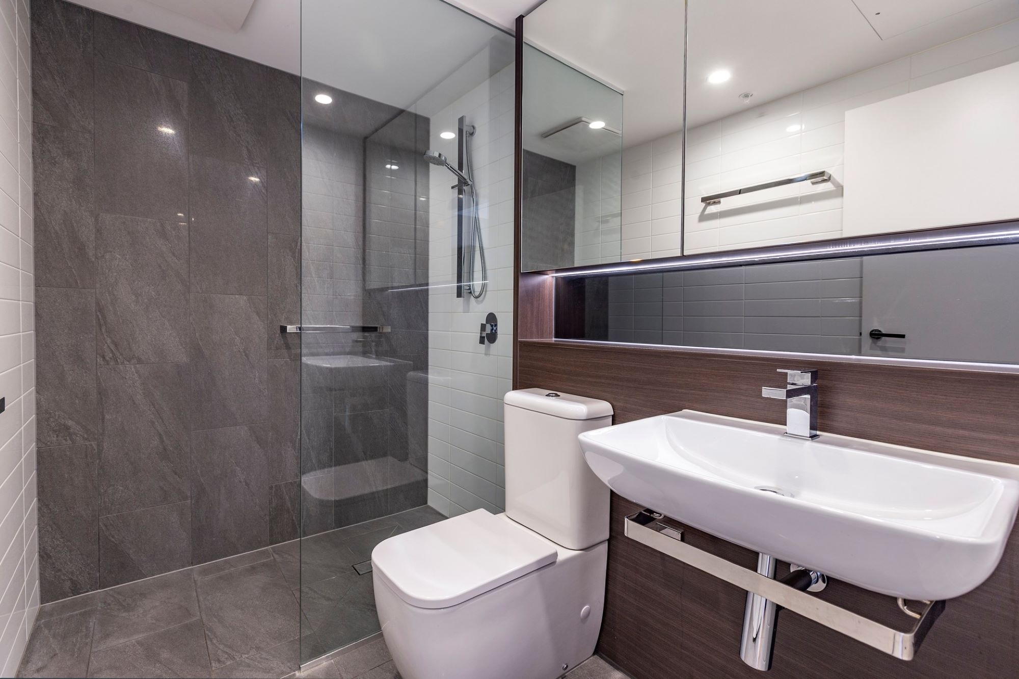 • Designer kitchen & bathrooms with stone benchtops and high gloss cabinets